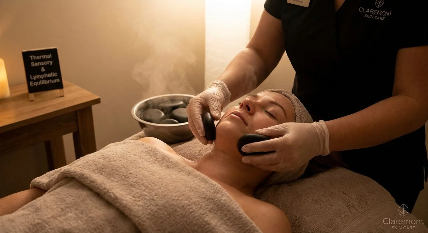 Sensory Equilibrium. A holistic experience combining clinical skincare with the deep relaxation of heated basalt stones. This treatment melts facial tension and encourages lymphatic drainage for a lifted, tranquil appearance.